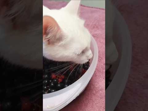 White Cat Loves Berries